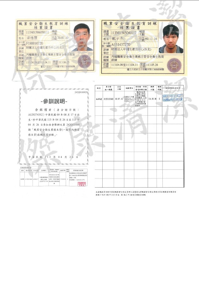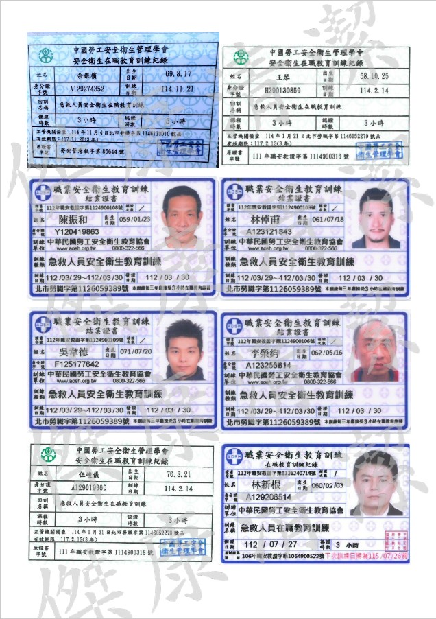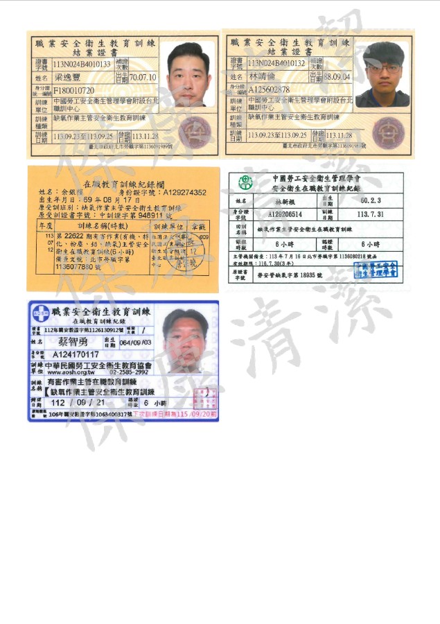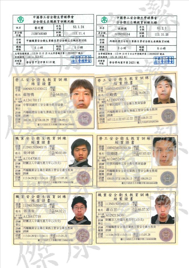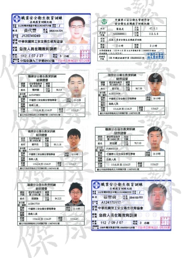 以下證照均是本公司近期最新,且均為本公司員工所有 (絕不外借其他外人證照)